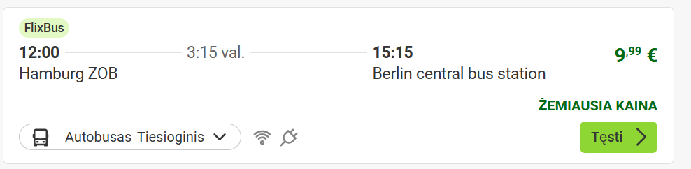 Autobuso bilietas: Hamburgas - Berlynas