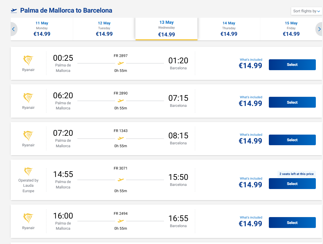 Skrydis: Maljorka - Barselona
