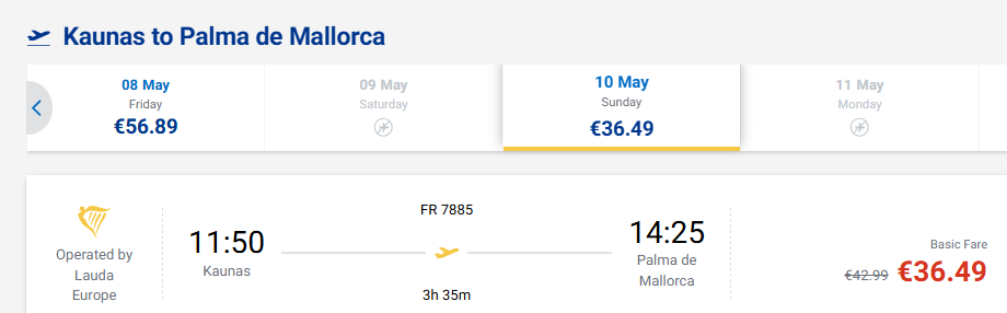 Skrydis: Kaunas - Maljorka