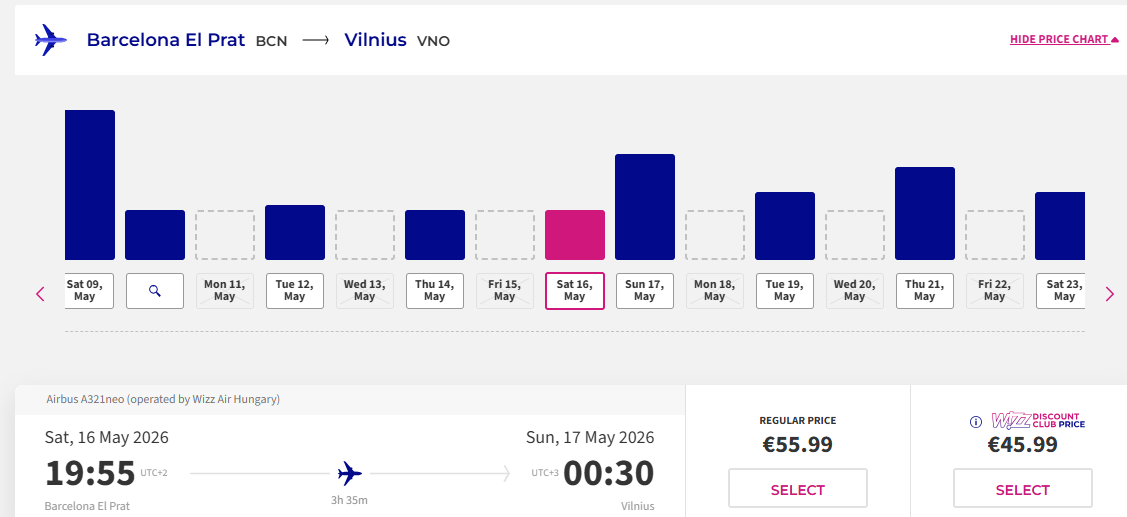 Skrydis: Barselona - Vilnius