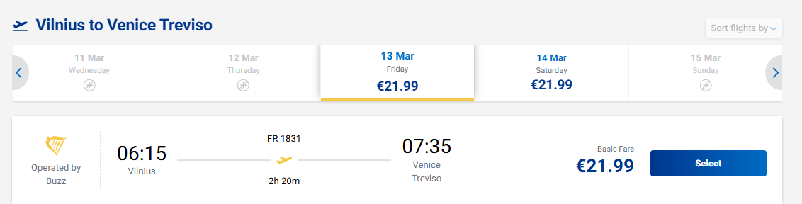 Skrydis: Vilnius - Venecija