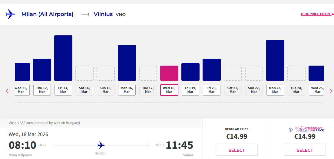 Skrydis: Milanas - Vilnius