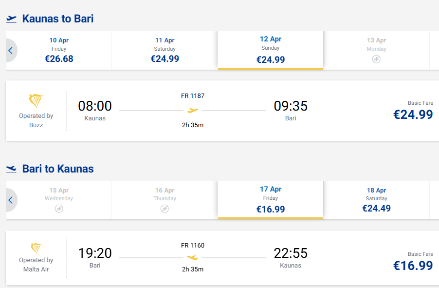 Tiesioginiai skrydžiai iš Kauno į Barį, Italiją - nuo 42 eurų į abi puses!