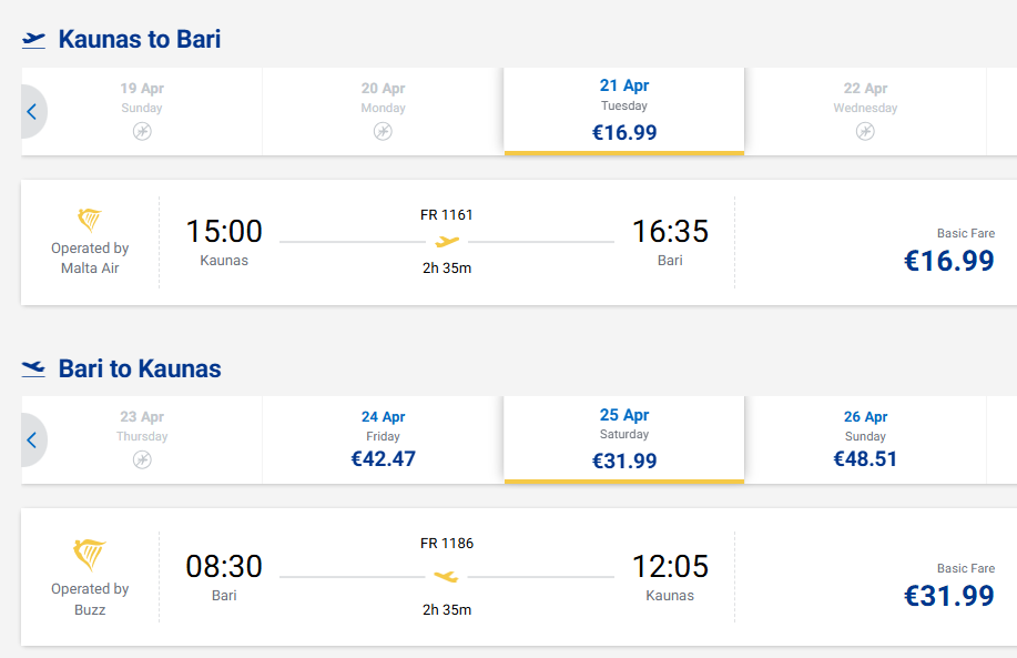 Tiesioginiai skrydžiai iš Kauno į Barį, Italiją - nuo 49 eurų į abi puses!