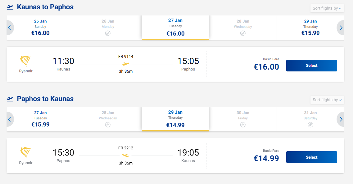 Tiesioginiai skrydžiai iš Kauno į Pafosą į abi puses - tik nuo 31 euro!