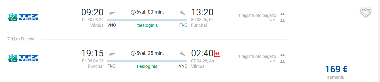 Tiesioginiai skrydžiai iš Vilniaus į Madeirą, Portugaliją - tik nuo 169 eurų į abi puses!