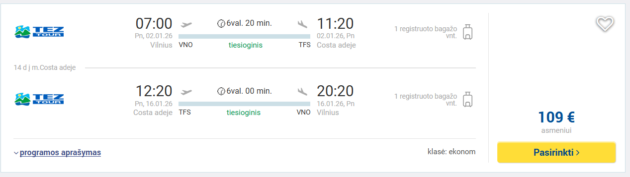 Keliaujame iš Vilniaus į Ispanijos Tenerifės salą - tik nuo 109 eurų į abi puses su įskaičiuotu registruotu bagažu!