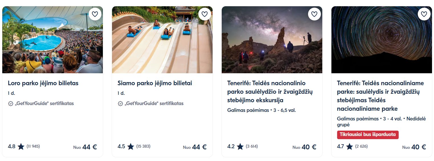 Getyourguide.com puslapyje, rasite visas ekskursijas ir lankomas vietas Tenerifėje!