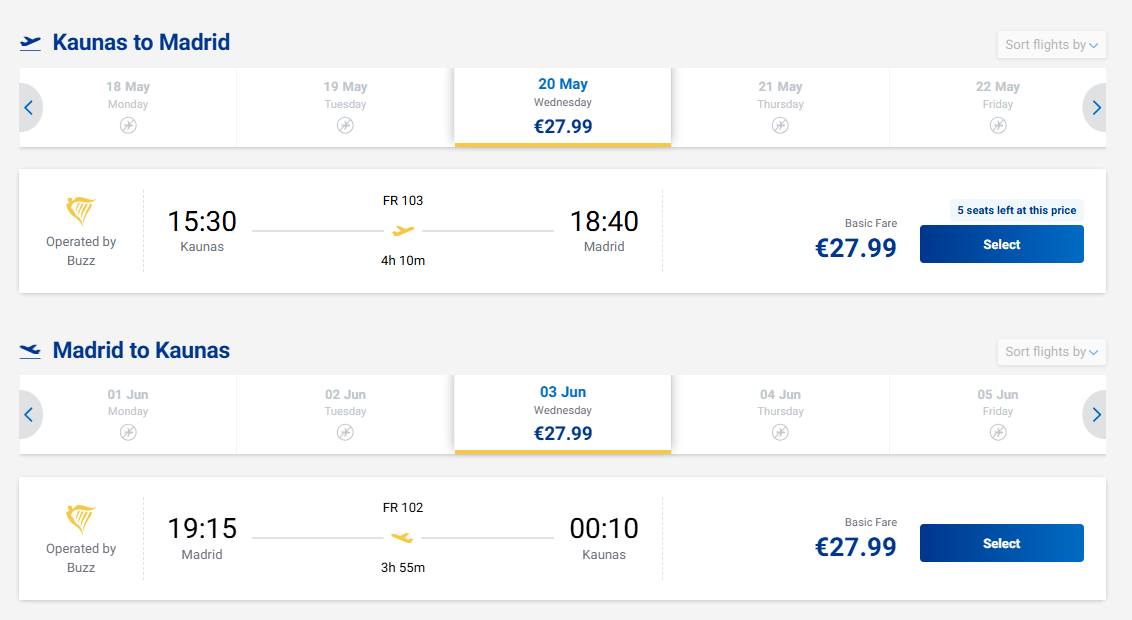 Skrydžiai iš Kauno į Kanarų salas su apsilankymu Madride – tik nuo 93 eurų už visus lėktuvų bilietus!