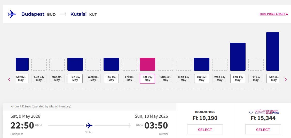 Skrydis: Budapeštas - Kutaisis