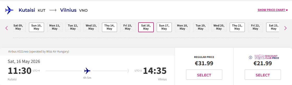 *Pigiausi skrydžiai perkant su Wizzair lojalumo naryste! Neturintiems narystės, skrydžiai pabrangsta 30 eurų.