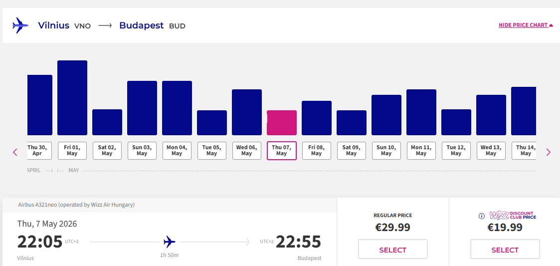 *Pigiausi skrydžiai perkant su Wizzair lojalumo naryste! Neturintiems narystės, skrydžiai pabrangsta 30 eurų.