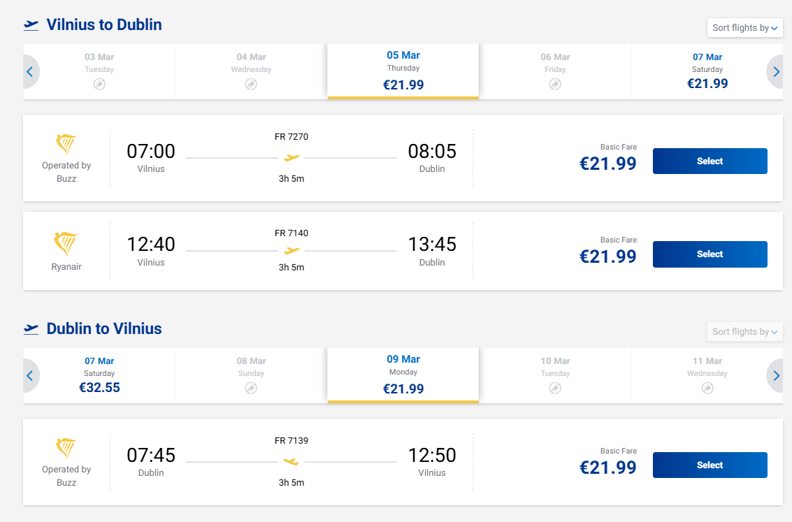 Tiesioginiai skrydžiai iš Vilniaus į Dubliną - tik nuo 44 eurų į abi puses!