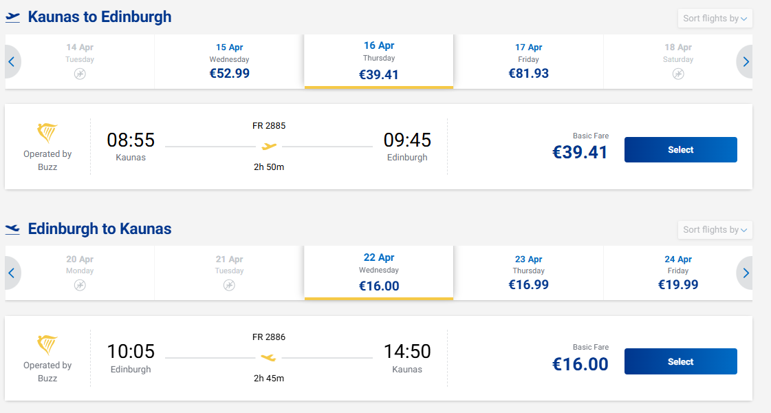 Tiesioginiai skrydžiai iš Kauno į Škotijos sostinę Edinburgą - nuo 55 eurų į abi puses!