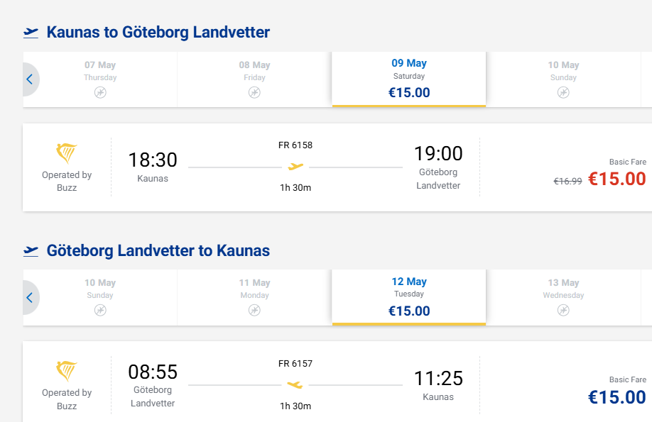 Tiesioginiai skrydžiai iš Kauno į Geteborgą, Švediją – tik 30 eurų į abi puses!
