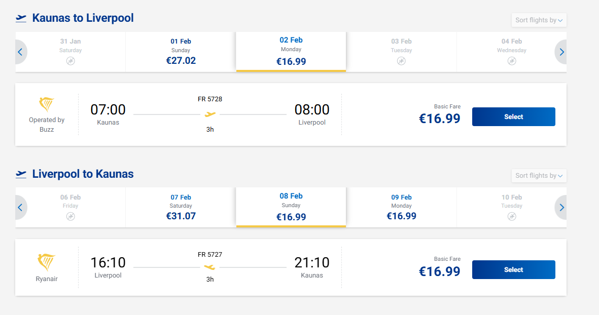 Skrydžiai iš Kauno į Liverpulį - nuo 34 eurų į abi puses!
