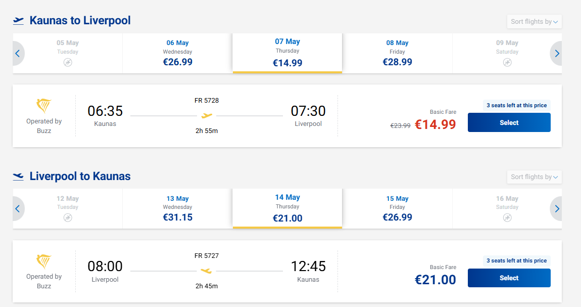 Skrydžiai iš Kauno į Liverpulį - tik nuo 36 eurų į abi puses!