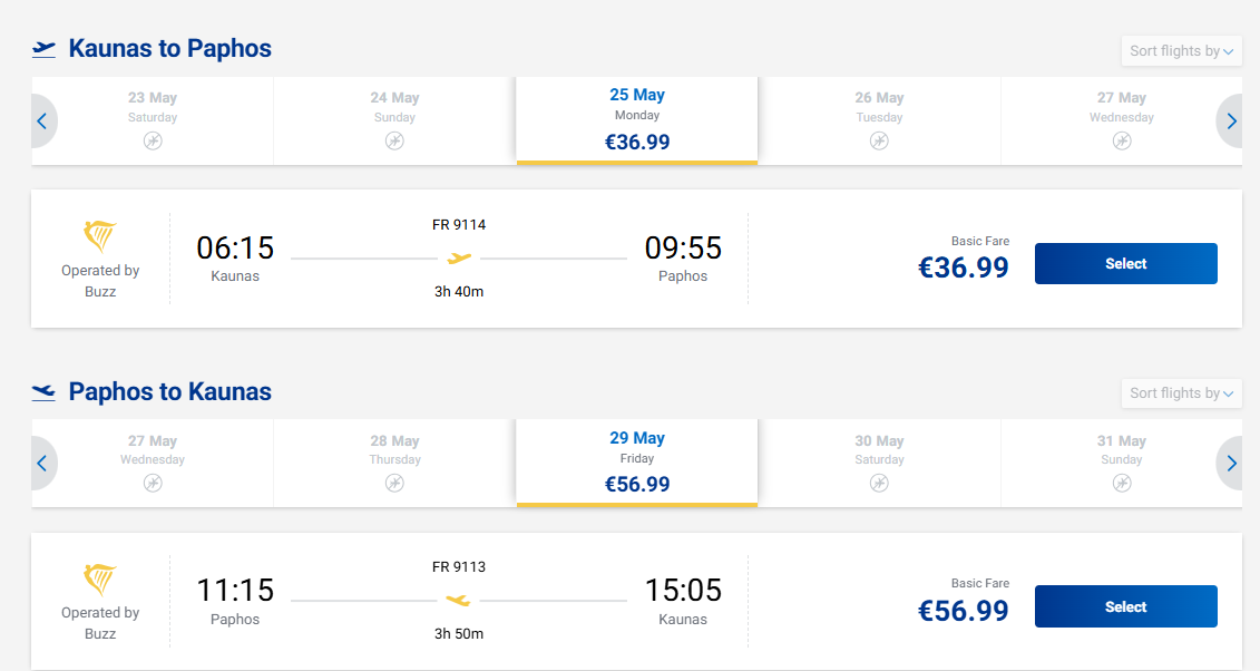 Tiesioginiai skrydžiai iš Kauno į Pafosą į abi puses - nuo 94 eurų!