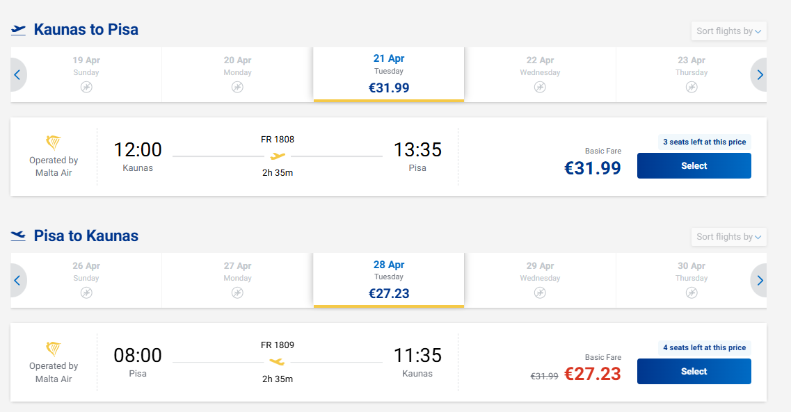 Tiesioginiai skrydžiai iš Kauno į Pizą, Italiją - tik nuo 59 eurų į abi puses!