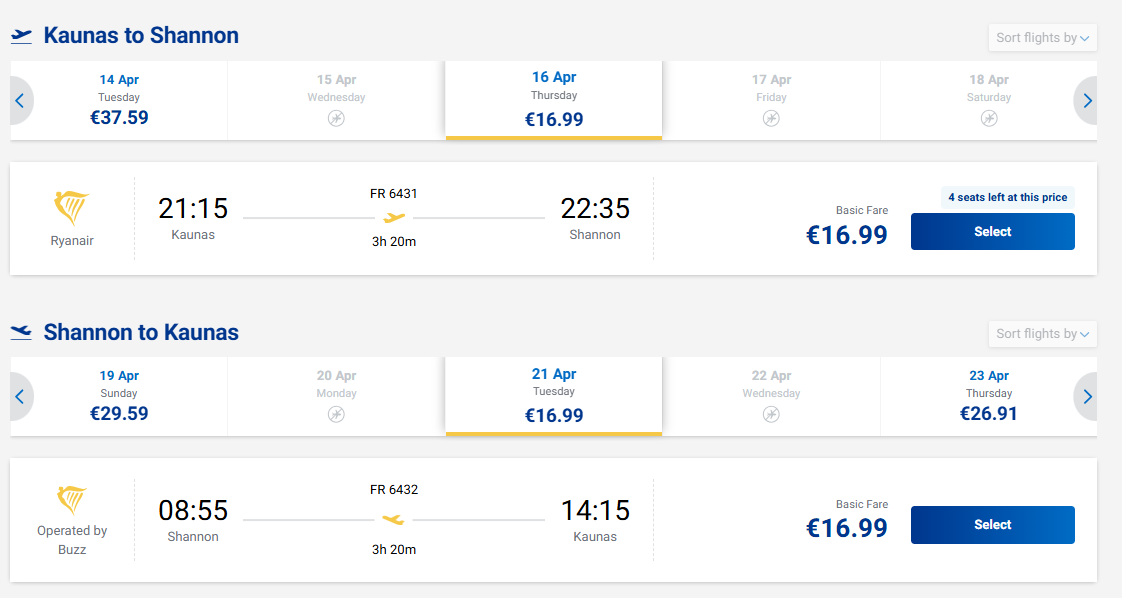 Skrydžiai iš Kauno į Šanoną, Airiją - tik nuo 34 eurų į abi puses!