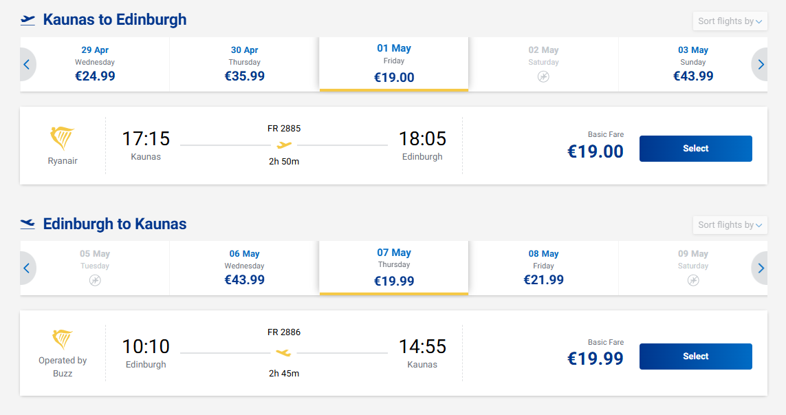 Tiesioginiai skrydžiai iš Kauno į Škotijos sostinę Edinburgą - nuo 40 eurų į abi puses!