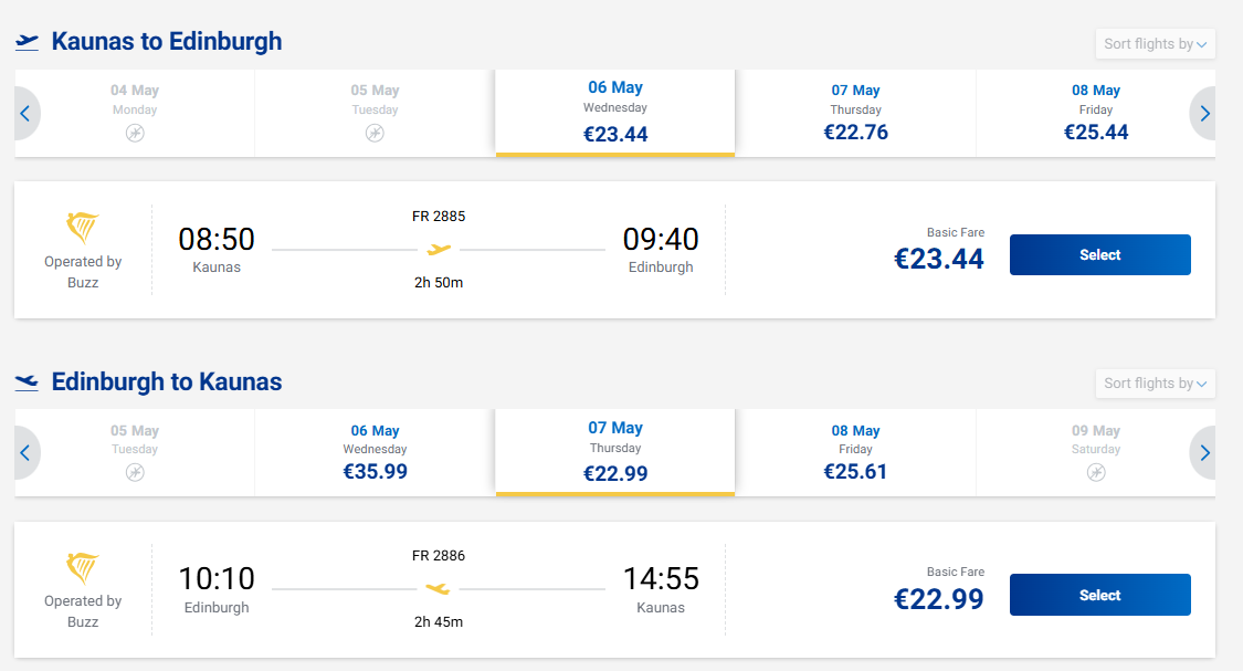 Tiesioginiai skrydžiai iš Kauno į Škotijos sostinę Edinburgą – nuo 46 eurų į abi puses!