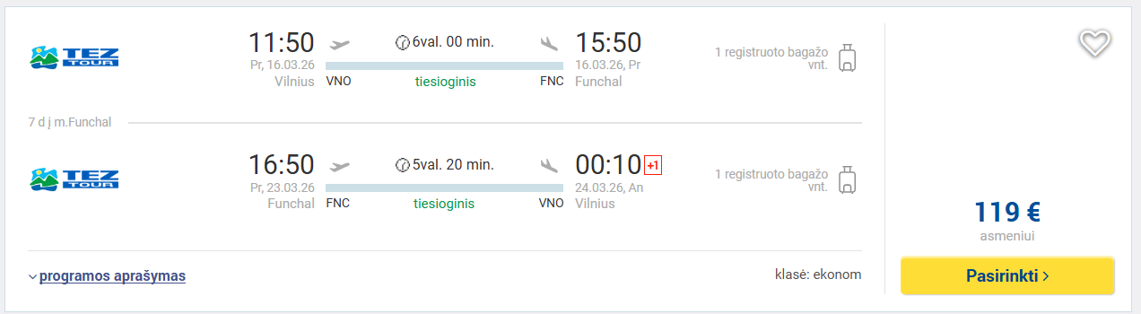 Tiesioginiai skrydžiai iš Vilniaus į Madeirą, Portugaliją - tik nuo 119 eurų į abi puses!